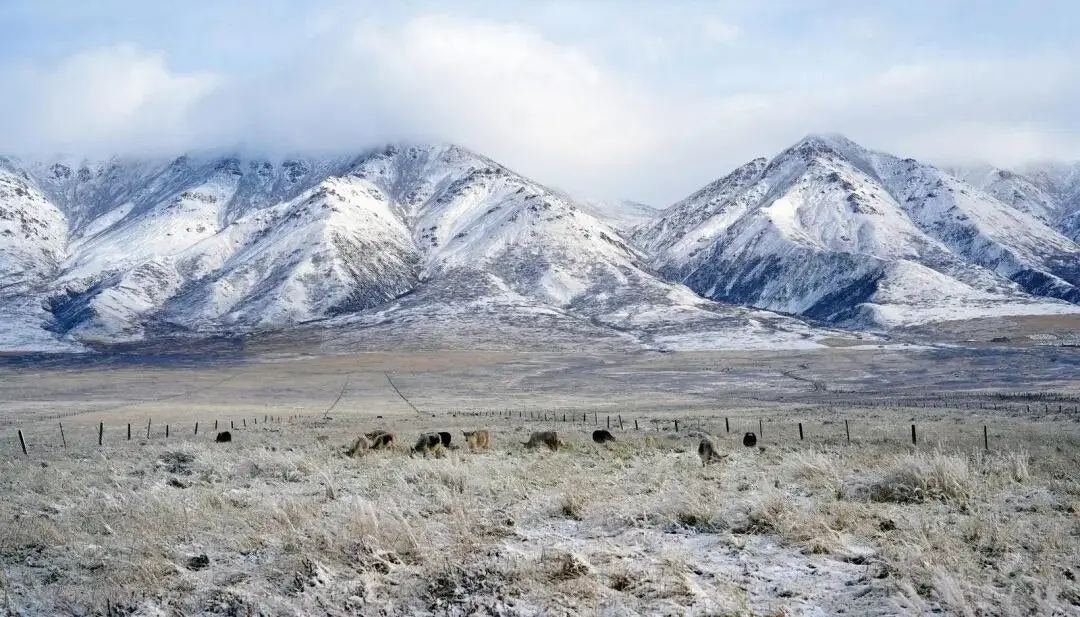 那散落其间的白牦牛,它们如洁白的珍珠,长毛拂雪,在寂静中缓缓踱步。风吹过原野,偶尔卷起冰面上的浮雪,如同为这片凝固的湖水系上一条飘动的哈达。站在这里,世界仿佛只剩下蓝与白两种颜色。白牦牛是这画卷中温顺的精灵,冰湖是沉睡的明镜,而你是这静谧中唯一醒着的灵魂。这片被冰雪净化的天地,终将化作你心中长久的宁静。