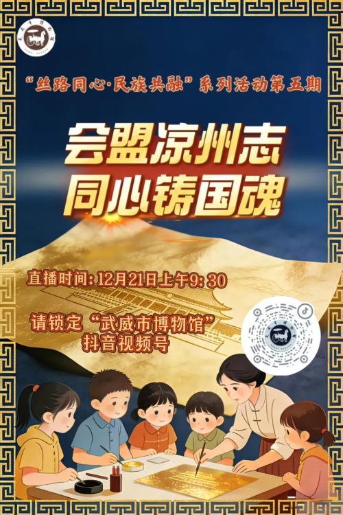 12月21日上午9:30锁定直播间,让我们一起走进武威市博物馆,循着历史的足迹,读懂凉州故事里的家国情怀,感受中华民族共同体意识的磅礴力量!