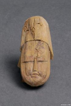 木雕彩绘男俑头