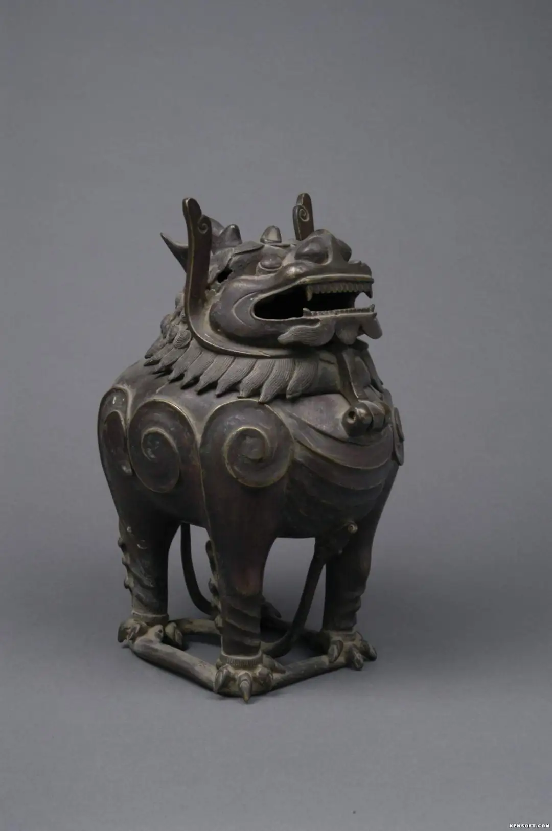 铜麒麟薰炉 清