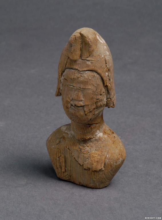 唐代木雕彩绘半身女俑