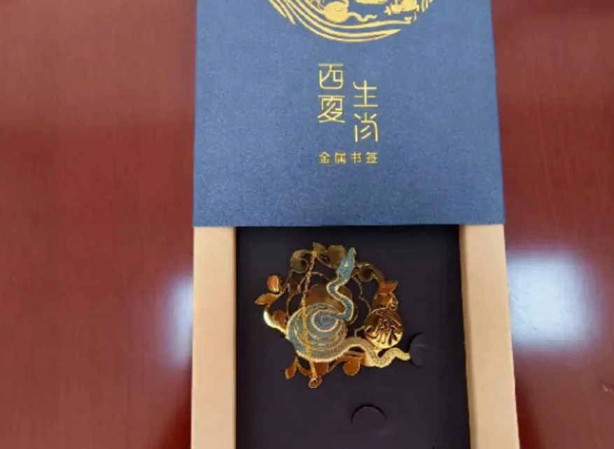 西夏生肖金属书签:书签以中国传统十二生肖为题材,设计均采自西夏文物,配以对应的西夏文字。