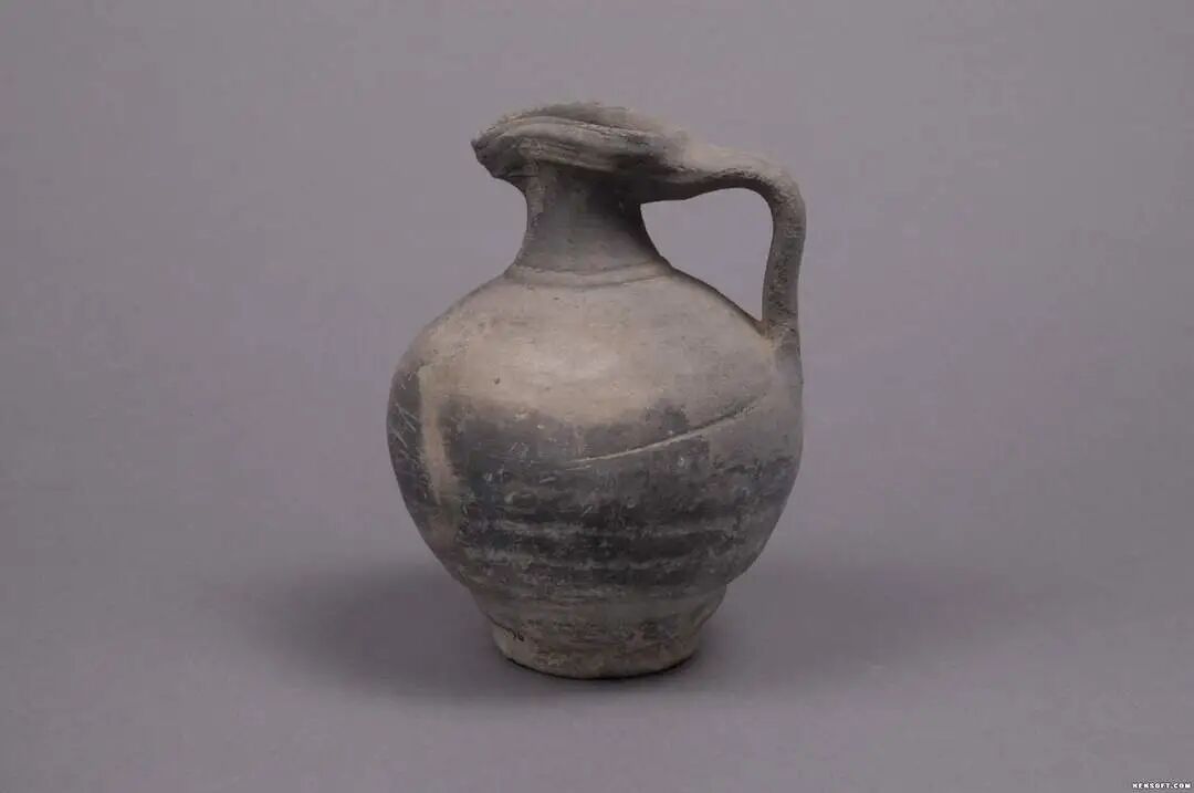 今天为大家分享的是汉代陶器曲柄单耳带流灰陶壶,1973年6月甘肃武威长城公社大队出土,细颈,圆腹,曲柄,平底,口有流。颈有一圈凸弦纹,腹部轮制明显,器形古朴别致。为国家三级文物,现馆藏于武威市博物馆。
