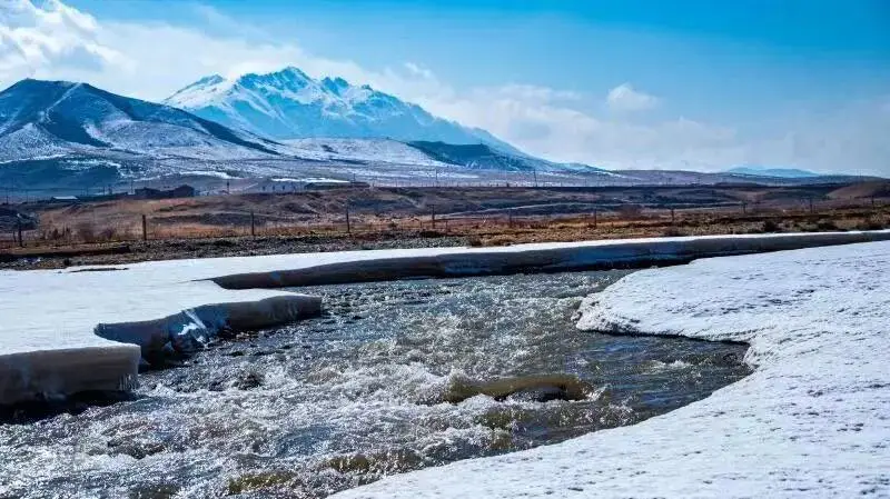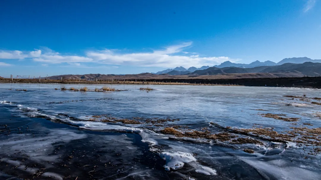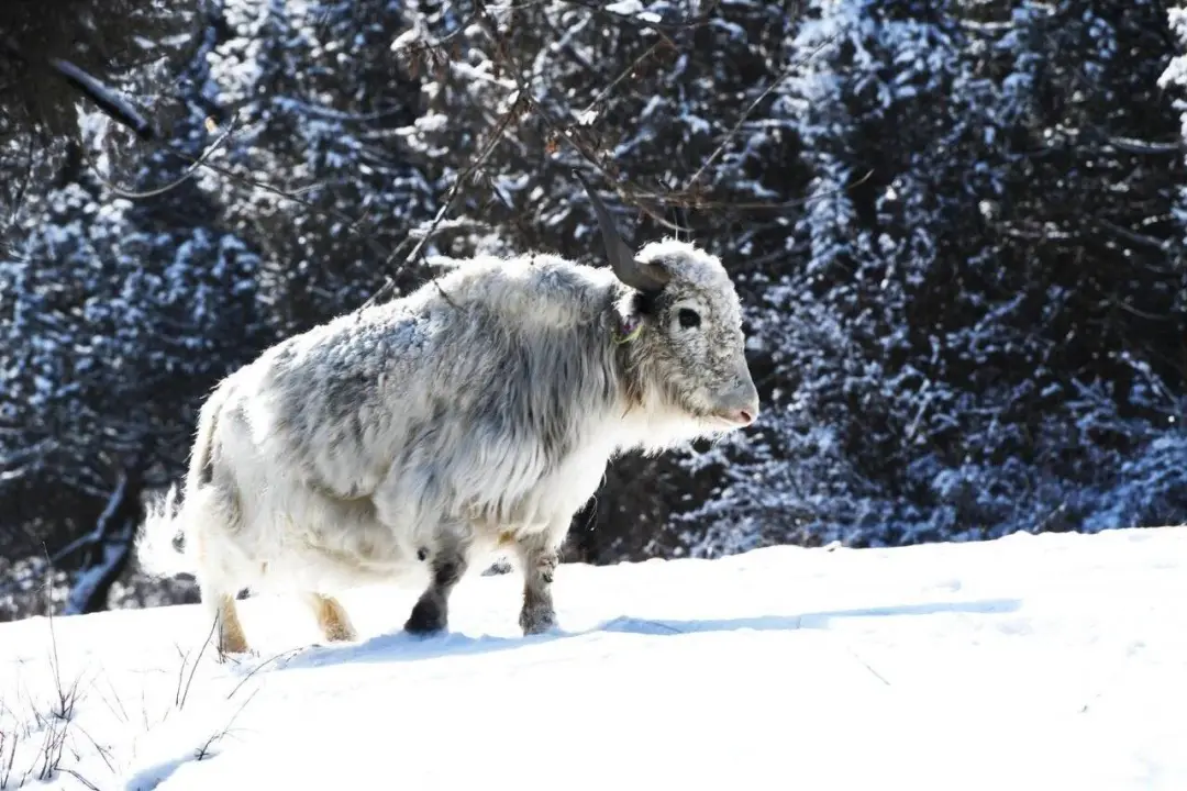 那散落其间的白牦牛,它们如洁白的珍珠,长毛拂雪,在寂静中缓缓踱步。风吹过原野,偶尔卷起冰面上的浮雪,如同为这片凝固的湖水系上一条飘动的哈达。站在这里,世界仿佛只剩下蓝与白两种颜色。白牦牛是这画卷中温顺的精灵,冰湖是沉睡的明镜,而你是这静谧中唯一醒着的灵魂。这片被冰雪净化的天地,终将化作你心中长久的宁静。