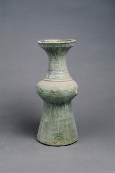 今天为大家介绍的是汉代陶器,绿釉陶钟。出土于甘肃武威中坝乡高楼村,红陶质,盘口平沿,长束颈,鼓腹,十六棱高台座,平底。口沿外壁、肩部各刻划一组水波纹,颈部、腹中部各饰一组凹弦纹,颈肩部一圈凸弦纹。腹部贴塑衔环铺首一对。通体绿釉。体修长,釉肥厚。为国家三级文物,现馆藏于武威市博物馆。