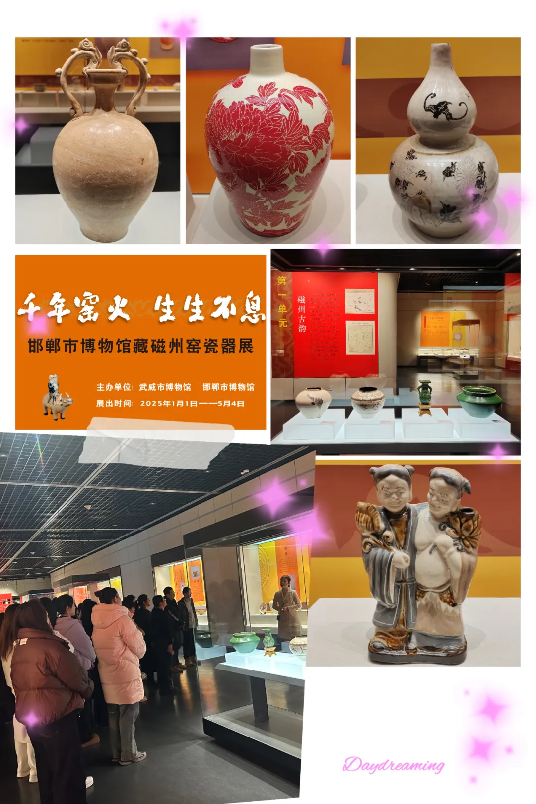 (1月1日—5月4日)130余件展品如凝固的窑火,串联起北朝至现代的悠悠岁月,勾勒出磁州窑千年不熄的薪火脉络。展览以器物为笔,细细描摹磁州窑的演进轨迹、独特风貌与陶瓷史地位,令观众品味传统工艺与时代创新交织的艺术之美。展览不仅收获媒体争相报道、游客倾心青睐与学者盛情赞誉,更以珍贵实物为陶瓷史研究添砖加瓦,扩大文化影响力的同时,为城市文旅发展晕染出浓墨重彩的一笔,让千年窑火在新时代绽放出璀璨光华。