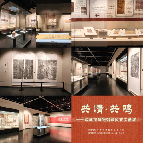 (9月30日—2026年1月30日)以中华民族多元一体演进为主线,100套177件馆藏文献珍品如璀璨星辰,照亮民族交融之路。展览遴选珍贵古籍善本、王杖诏书令册简、汉藏文大藏经等精品,西夏文、回鹘文、藏文,诉说月氏、党项、回鹘等多个民族在武威相知相融的历史。它揭示了武威在中华民族共同体形成中的重要地位,弘扬爱国主义精神,传递各民族共生共融的共同体理念。该展览荣获2025年全省博物馆陈列展览优胜奖,以文献为纽带引发观众内心深处的共情共鸣,凝聚民族情感,筑牢文化认同根基,彰显文博力量。