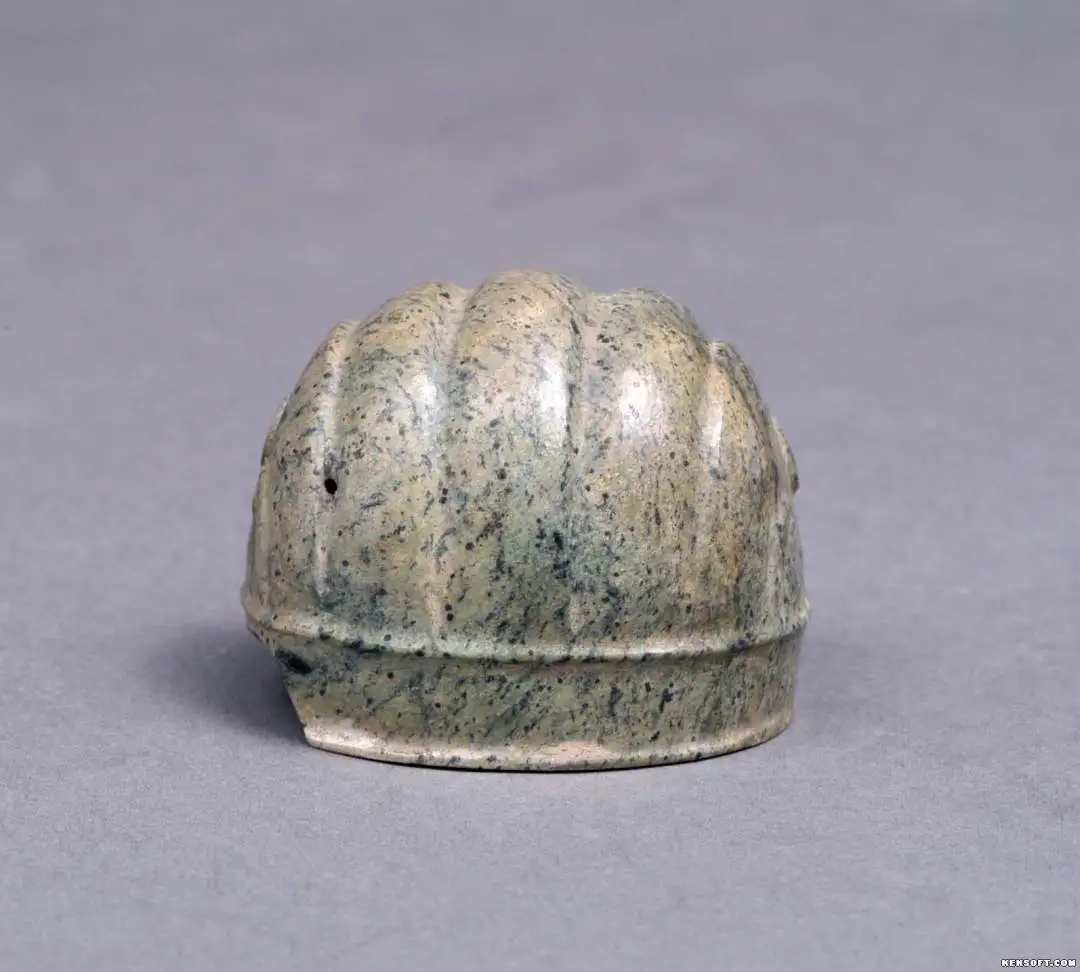 今天向大家分享玉发髻冠,明代玉器,墨绿玉制成,冠状,下端两侧有对称的两小孔,用于插发簪。冠上饰五棱条带状纹和突弦纹。出土于武威市永昌镇,为国家三级文物,现馆藏于武威市博物馆。