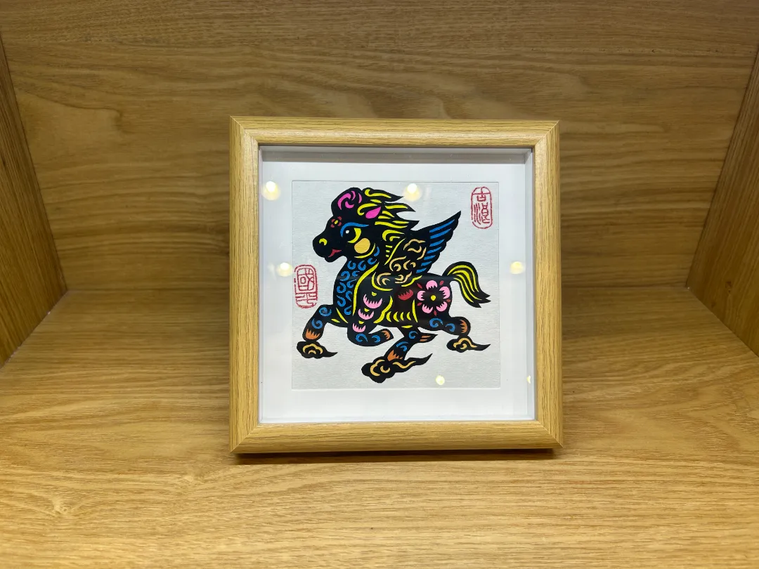 小夜灯的底色,是古浪剪纸最具代表性的正红,搭配干净的纯白,延续了剪纸“线线相连、虚实相生”的老技法。粗犷的轮廓线配上细腻的镂空小细节,没有多余的修饰,却藏着西北民间艺术的质朴感。而且还紧扣2026丙午马年,把“福”字和奔跃的骏马巧妙融合,再加上太阳纹、回纹这些吉祥小纹样,既呼应了武威“凉州大马,横行天下”的特色,也藏着马到成功、福气满满的小期许。