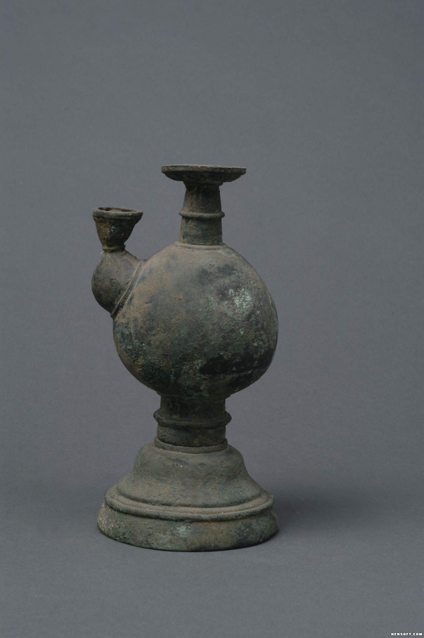 曲柄单耳带流灰陶壶